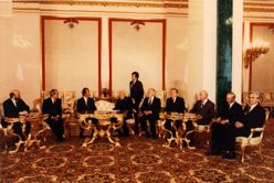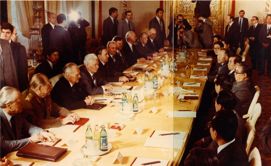 Визит в СССР короля Испании Хуана Карлоса Первого и и королевы Софии. 1984 Весна 1984 года. Торжественная встреча и проводы в аэропорту короля Хуана Карлоса I и королевы Софии. Встреча и переговоры в Кремле. Присутствуют: К. У. Черненко, Н. А. Тихонов, А. А. Громыко, министр иностранных дел Испании Моран и другие официальные лица СССР и Испании.