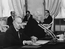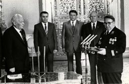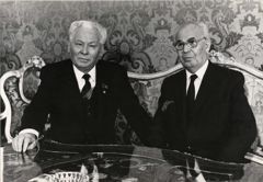 Визит товарища Лазара в Советский Союз. 1984Визит в Москву члена Политбюро ЦК Венгерской Социалистической рабочей партии, Председателя совета министров ВНР Дьердя Лазара. Вручение К. У. Черненко Лазару ордена Октябрьской революции.