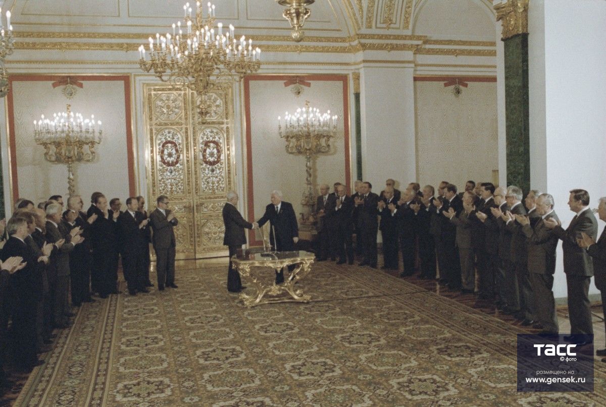За большие заслуги перед Родиной Константин Устинович Черненко, видный деятель Коммунистической партии и Советского государства, трижды удостоен звания Героя Социалистического Труда и награжден тремя орденами Ленина, тремя орденами Трудового Красного Знамени, многими медалями Советского Союза, а также высшими наградами Народной Республики Болгарии, Германской Демократической Республики, Монгольской Народной Республики и Чехословацкой Социалистической Республики.
